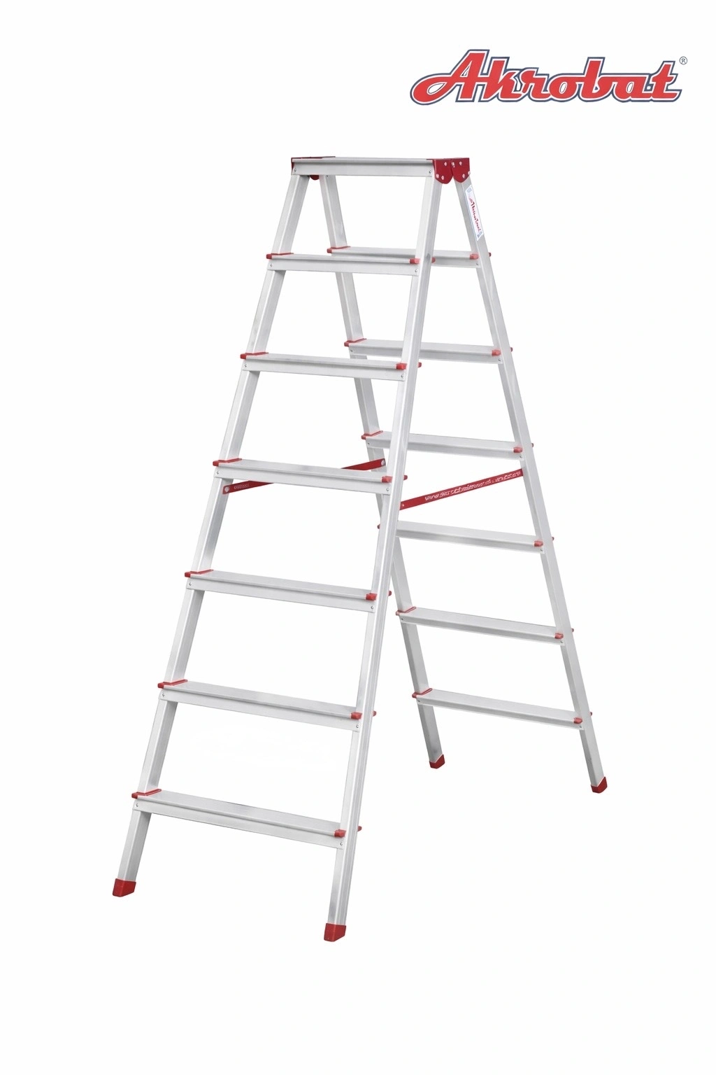 Akrobat 7 basamaklı çift çıkışlı alüminyum merdiven, yüksek çalışma noktalarına güvenle ulaşmanızı sağlayan dayanıklı, hafif ve pratik bir merdiven modelidir. Çift çıkışlı tasarım sayesinde her iki taraftan da konforlu ve hızlı erişim sunar; bu da özellikle boya‑badana, temizlik, raf yerleştirme gibi işler için büyük avantaj sağlar. Hafif alüminyum gövde uzun ömürlü kullanım sağlar ve taşıma kolaylığı sunar. Bu merdiven hem ev hem de profesyonel kullanım için uygundur.
